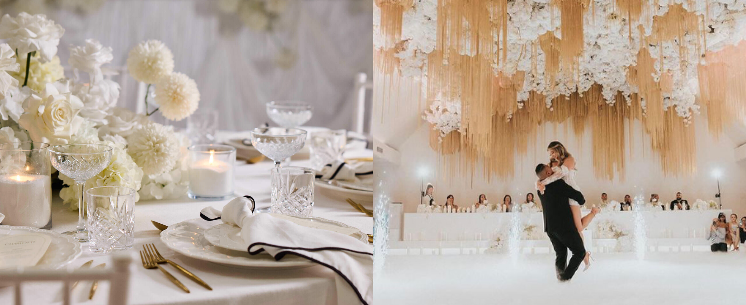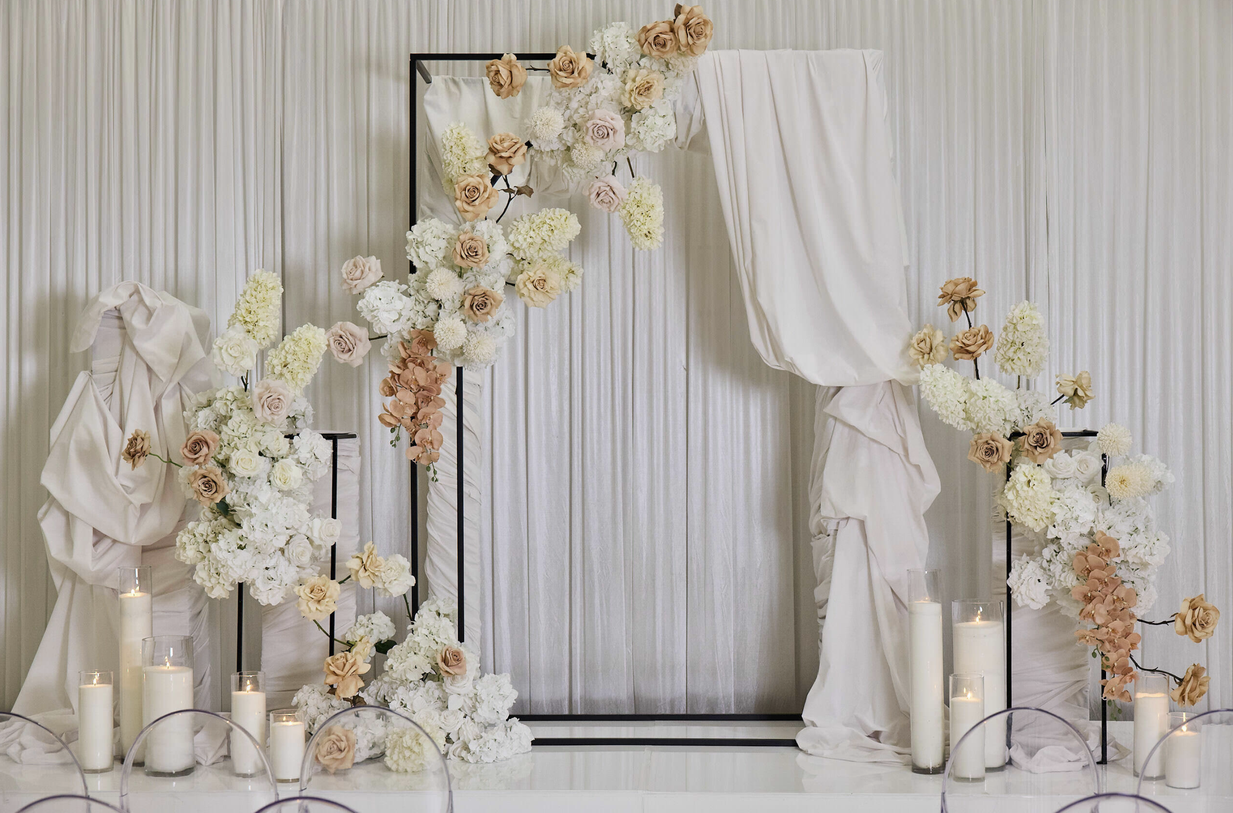 Bold, three-dimensional designs are taking centre stage. Florals aren’t just arranged — they’re sculpted into dramatic installations that transform venues into immersive art experiences. Think sweeping ceremony arches, gravity-defying centrepieces, and floral “clouds” that invite guests to step inside the moment. This sculptural approach creates unforgettable focal points and perfect photo backdrops.
