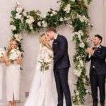 The modern space provides a blank canvas that allows for some elaborate floral pieces to truly make it your own.